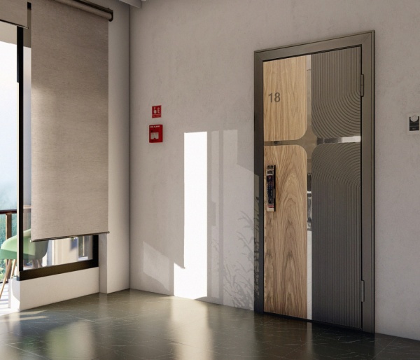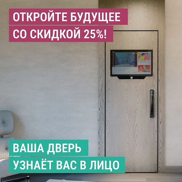 Электромеханические двери с интегрированной биометрией, монитором, видеорегистратором и домофоном.